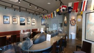 至る所に海上自衛隊とアメリカ海軍の写真が飾られ、テレビでは海自の広報動画が流れ、店内BGMは軍楽隊の曲です。