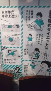 店内には「自衛隊式ダイエット」などの、ライフハックのポスターや・・