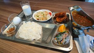 定番の牛乳がついています。カレーは自分で入れるスタイル。