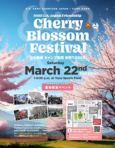 アメリカ陸軍の座間キャンプで、2025年3月22日(土)午後1:00~6:30に、Camp Zama Cherry Blossom Festival 2025 (座間キャンプ 桜祭り 2025)