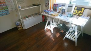 木の床はいい感じです。メンテは大変ですが、使うほど良い色になりそう。