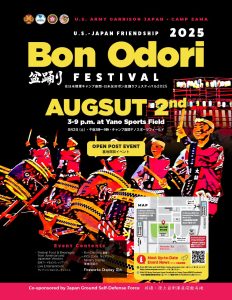 アメリカ陸軍の座間キャンプで、2025年8月2日(土)午後3時~9時に、Camp Zama Bon Odori Festival 2025 (座間キャンプ 盆踊りフェスティバル 2025)が予定されています。